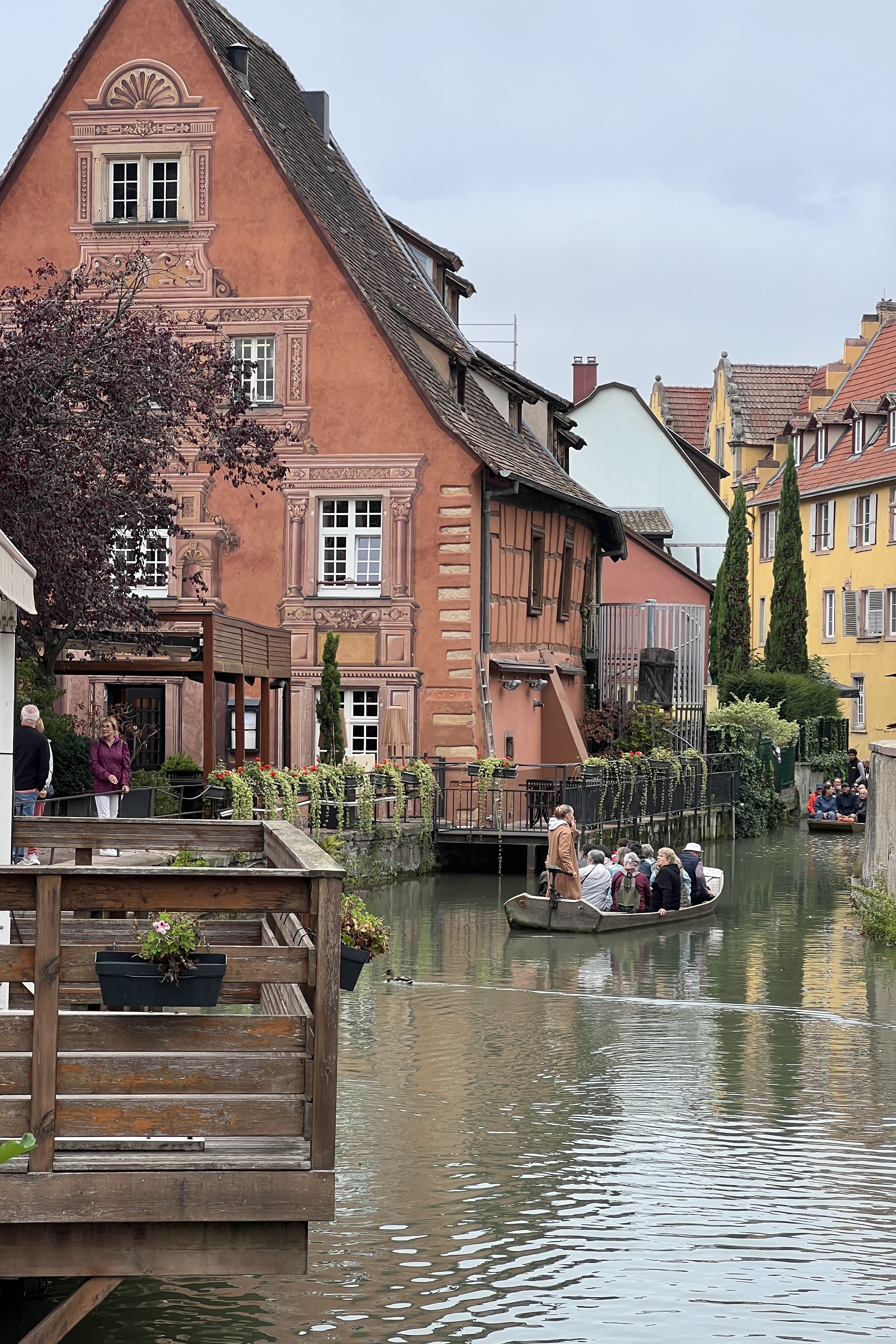While the tourist crowds at first felt intense—especially on a Saturday when the craft market is running—we managed to find a rhythm by doing early morning walks on the bike/walking trails south of the city, which took us into where the locals live. We even met a wonderful local couple who gave us advice on travel and even confirmed our suspicion that the food here is often geared toward tourists. They told us they go across the border into Germany often for grocery shopping and meals. We also noticed at night we had a lot more of the city to ourselves; after the day-trippers had left. After a few days of navigating around, being with other tourists really was no problem. We never had to wait long to get our perfect photo, or get to where we needed to go; and definitely no issue finding a place for a spontaneous afternoon drink to people watch and enjoy the uniqueness that is Colmar. We also liked the energy and hearing so much German and French; it reminded us of what we are doing and how lucky we are to be living this slow travel life.