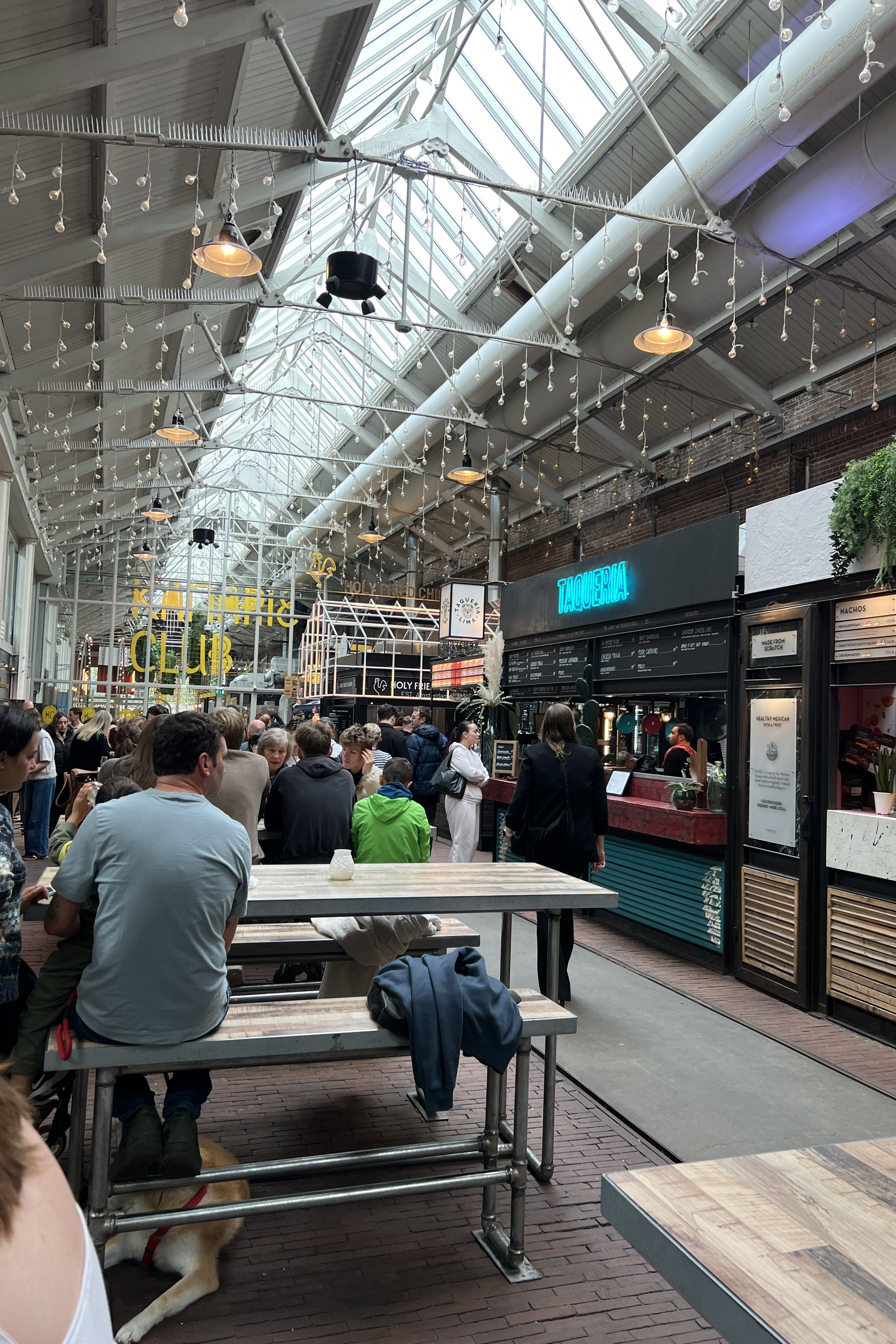 The Food Hall & Local Snacks: After one of our canal walks, we wandered into a nearby, packed Food Hall—a maze of stalls offering everything from Thai to Spanish tapas. Here we were able to try Bitterballen: delicious, deep-fried crispy balls traditionally served with mustard. We tried a sampler of five different types—a great way to sample this pervasive Dutch snack!