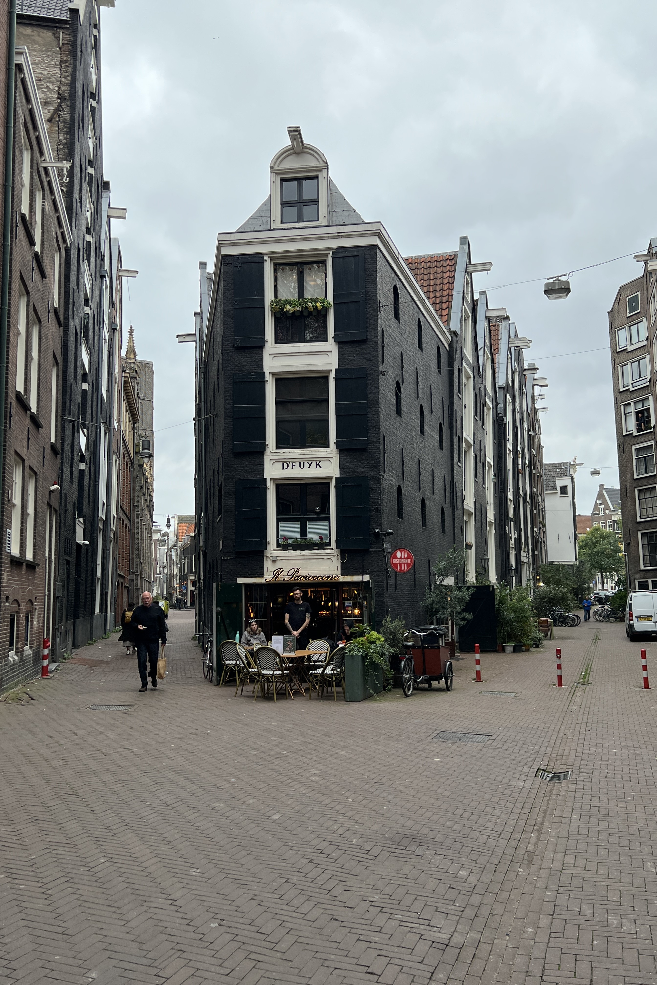 The Jordaan neighborhood: We walked the beautiful Jordaan neighborhood to see the canals and used the Anne Frank House as our destination target. This historic area is the epicenter for canal tours and activity, with beautiful bridges, architecture and a great vibe. It is easy to see why this is the coveted place to stay in Amsterdam. After wandering the streets and picture taking, we took a moment to pause at Van Zuylen, a popular canal-side spot with great outside seating on abridge.