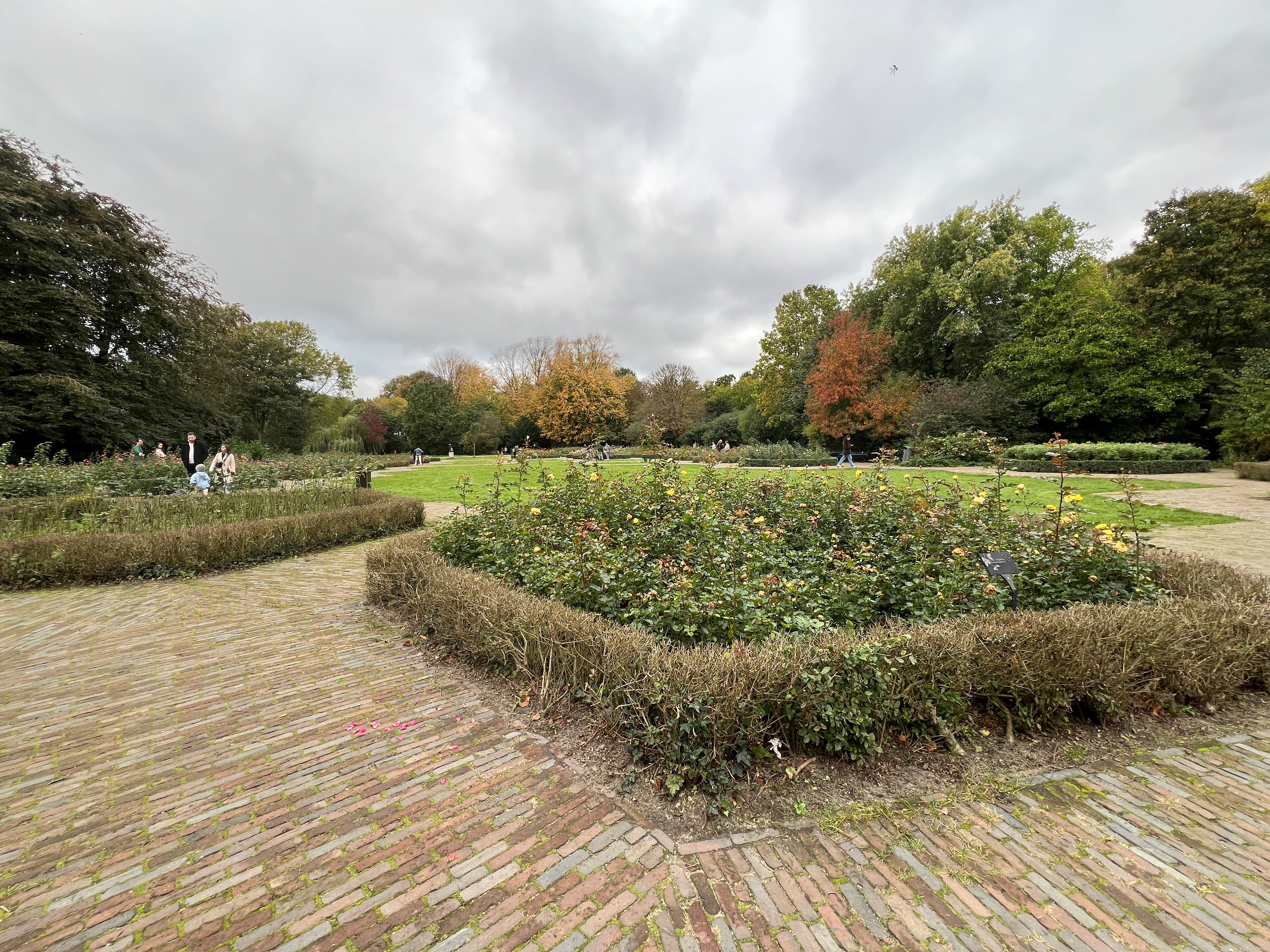 The Magnificent Vondelpark (Unexpected Highlight): When a planned market visit didn't materialize, we set off to the next stop on our daily adventure; Vondelpark. This is, without a doubt, one of the best city parks we have ever visited, and one of the largest! It had so much going on; biking, running, organized fitness classes, children play areas, and also some beautiful spaces for solo contemplation, and enjoying time with a significant other. We loved the mix of people, both tourists and locals, and every age was represented. The two most memorable things about the day and park were 1) the architecture; along the outside of the park stand massive, grand mansions from the same historic period. There are so many different architectural styles to these mansions that it adds a unique, almost regal layer to the landscape. 2) The Rose Garden; I had read about this area of the park, and although most of the blooms were spent, you could see how it must be amazing in the summer. We took our time reading about the different varieties and taking pictures of varieties we hope to plant back home.