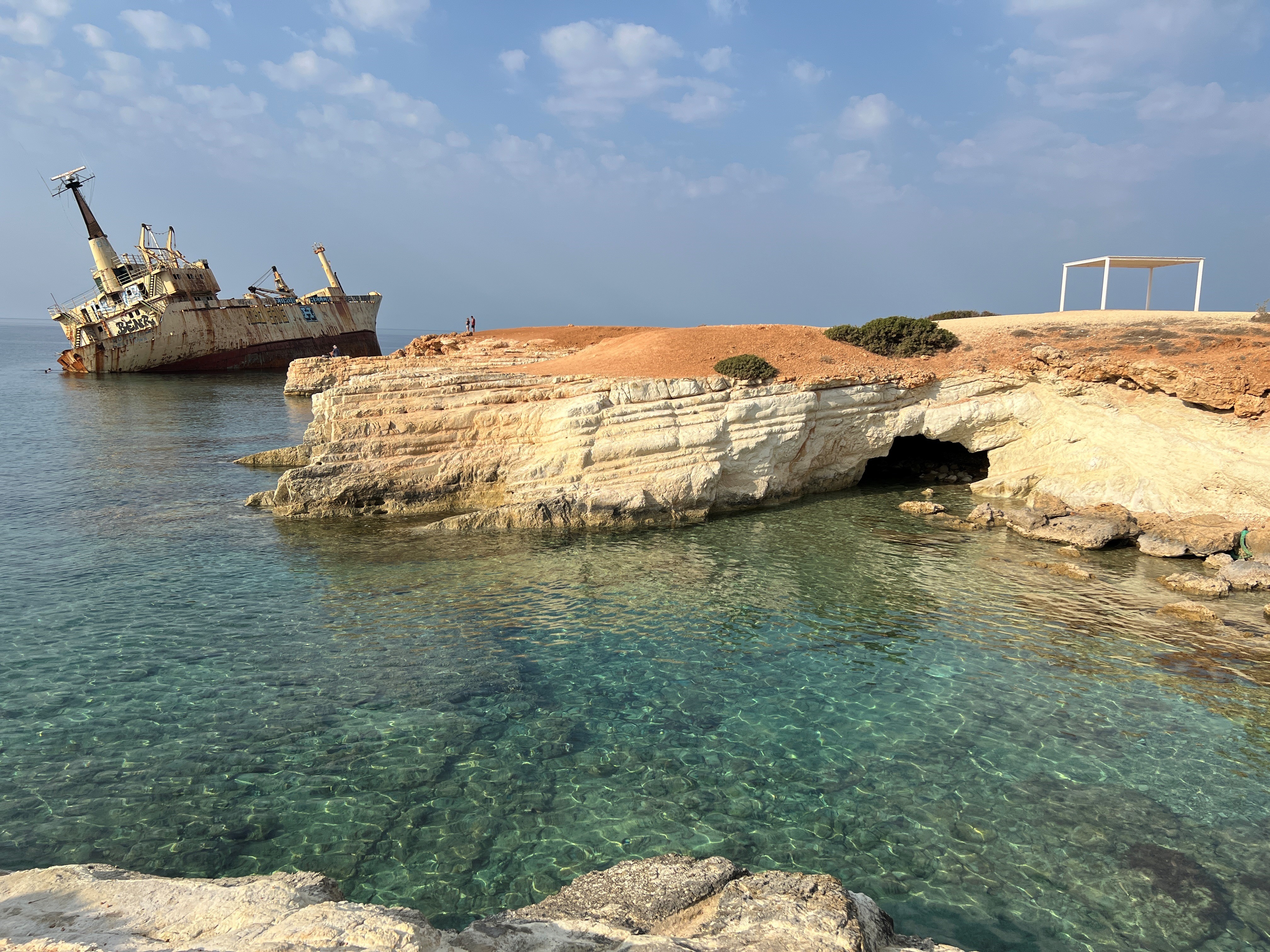 For a quiet break, we took the inner-city bus to Pissouri Beach for a self-guided exploration of a smaller village. This allowed for a nice 5-hour day of hanging out at the beach and having lunch. We learned the local buses don't run very frequently, which meant we had to stick to a tight schedule, but it allowed us to explore the quieter, coastal part of this town. We wanted to walk the town itself as well as visit the beach, but they are split and it would have taken us a few hours to hike up via the road to the town from the beach, so we settled for checking it out as the bus drove through. The beach had amazing clear water and wasn’t as cold as Paphos, however, was very rocky, requiring proper footwear. We purchased two sun beds, which are regulated in Cyprus so they all cost the same 2,50€ per bed.